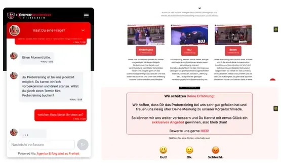 Die Website sorgt nun für eine deutliche Steigerung der Kursanfragen und generiert nachhaltig monatlich steigende Mitgliederzahlen – unabhängig von der Jahreszeit. Der Verwaltungsaufwand wurde stark reduziert, die Erscheinungsquote deutlich verbessert, die Online-Sichtbarkeit verbessert und durch die steigende Zahl an Google-Bewertungen zusätzlich gestärkt.